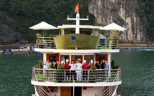 16.00: Return to Maya Cruise. You will join a traditional cooking class. Our chef will instruct you in the making of some Vietnam dishes. Watch the magnificent sunset over the Gulf of Tonkin. In the early evening the boat has its Happy Hour deal.