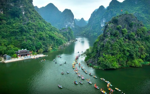 13:30 -16:00: Take a boat trip to visit Trang An Complex - inscribed as a UNESCO World Heritage Site.. You will head to Trang An, embark on a traditional sampan through an out-standing natural beauty of majestic limestone massif and the numerous caves: Hang Toi ( Dack ) cave - 320 meter long, Sang (light) cave - 90 meter long, and Hang Nau Ruou (Cooking wine) cave - 250 meter long…